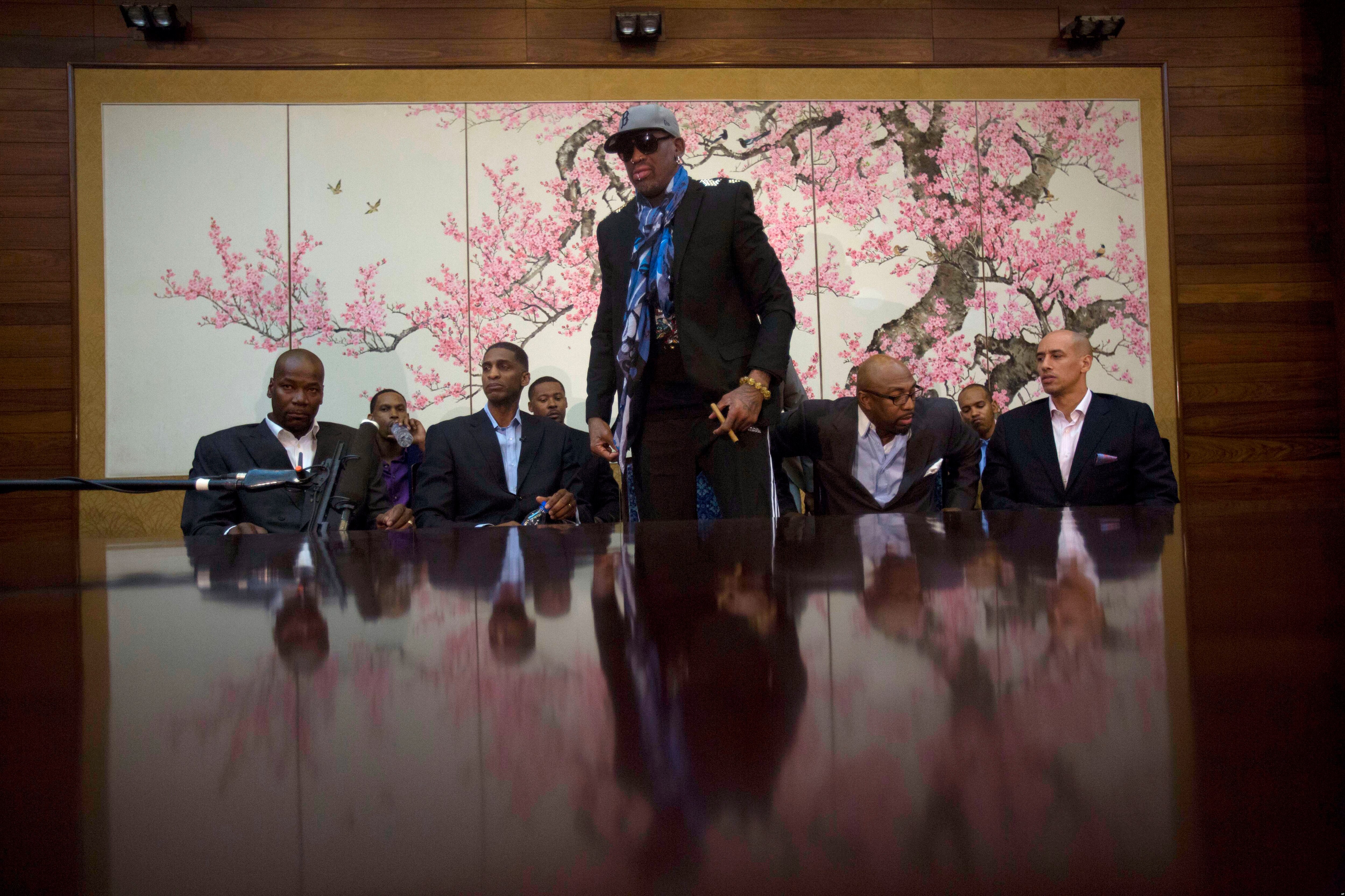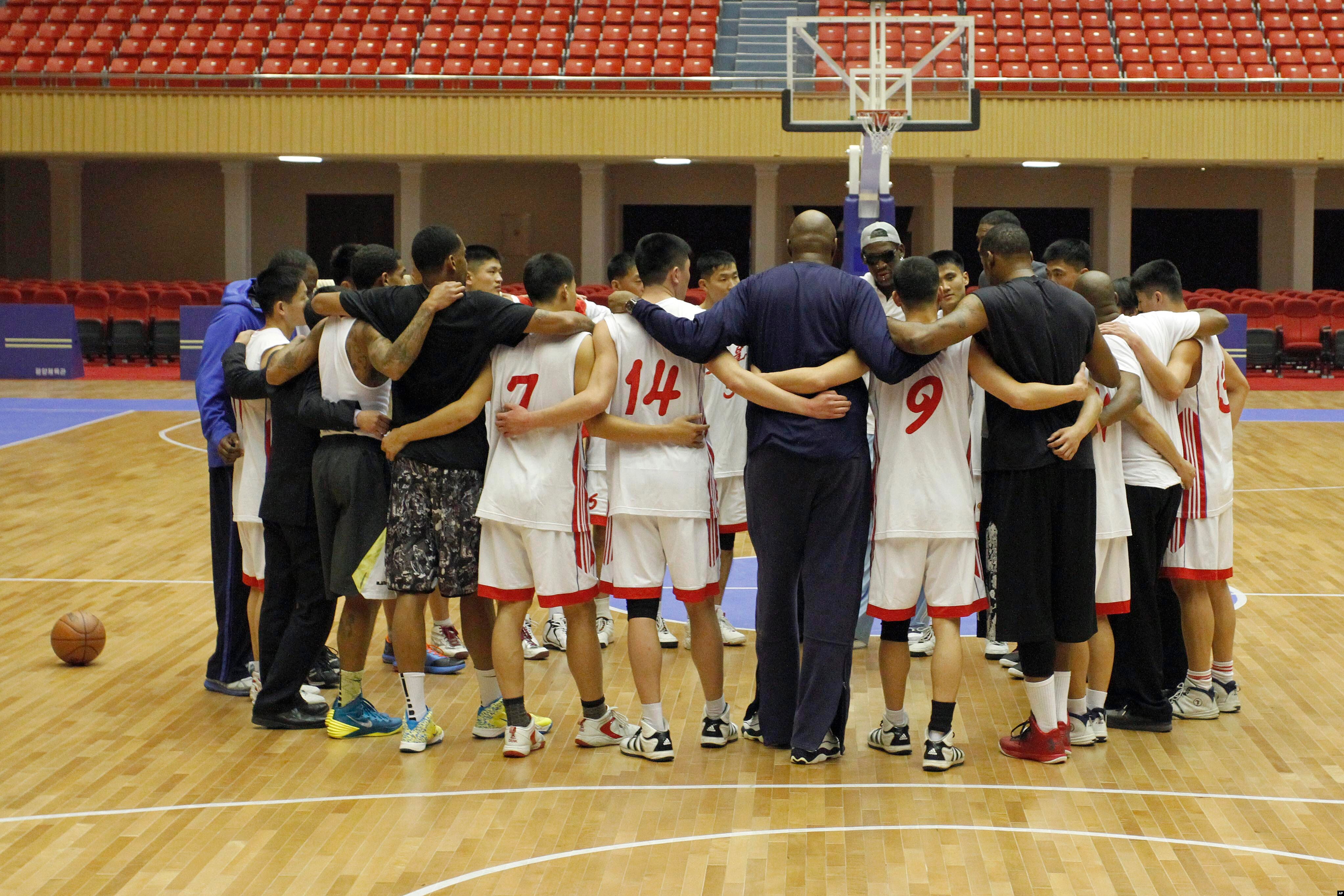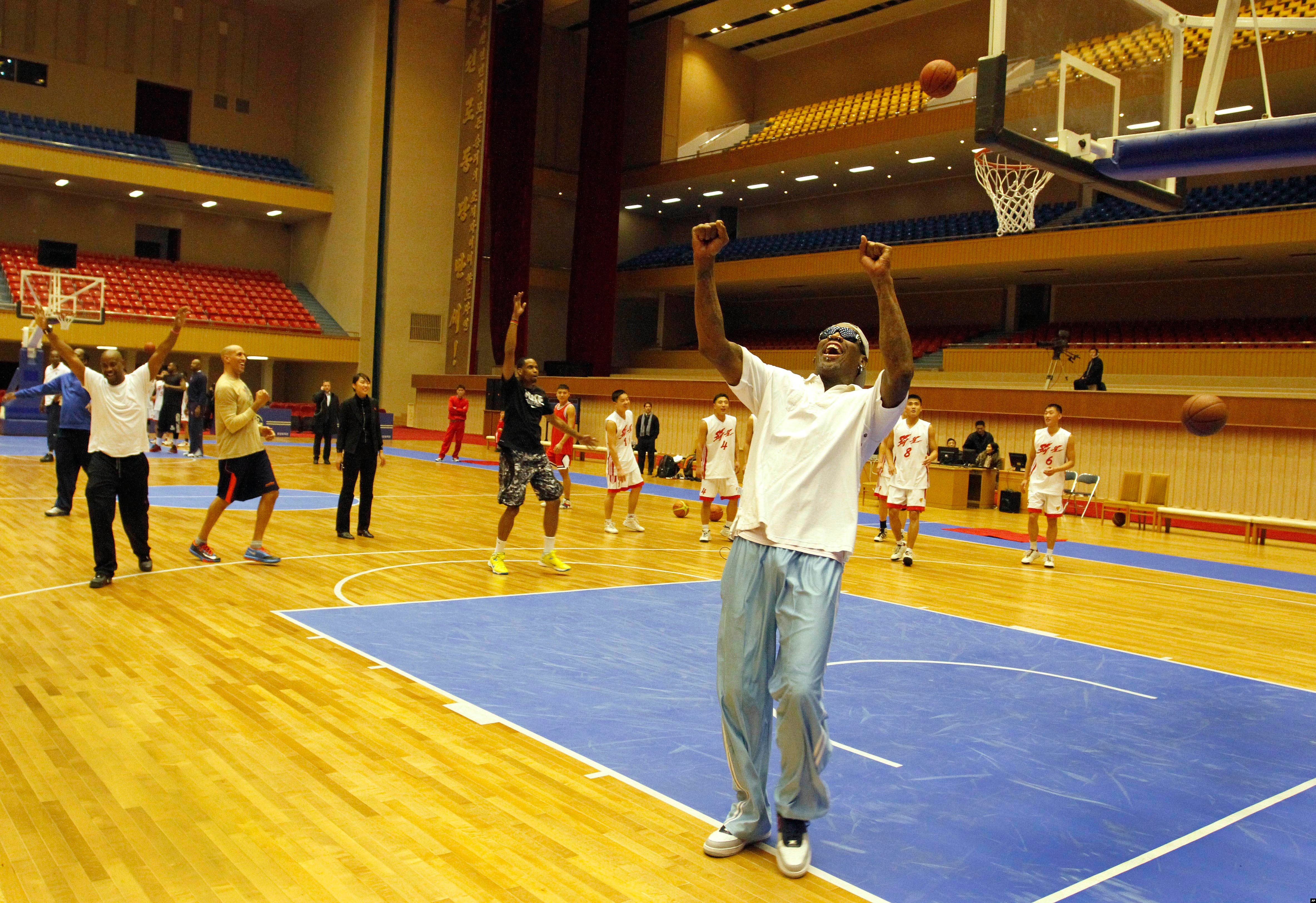 Rodman, who is on his fourth trip to North Korea, calls Kim his friend. This time, he brought along a group of former NBA players and others to play basketball with North Korean players, an effort in what Rodman calls sports diplomacy.